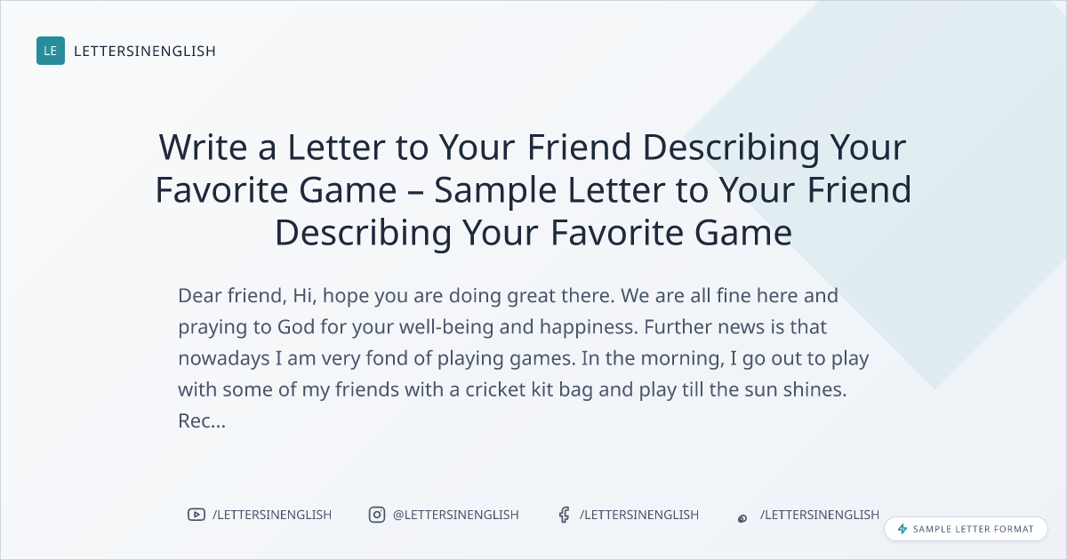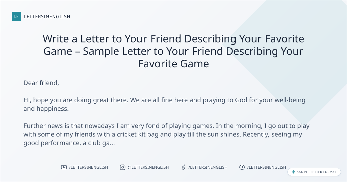 Write a Letter to Your Friend Describing Your Favorite Game – Sample Letter to Your Friend Describing Your Favorite Game