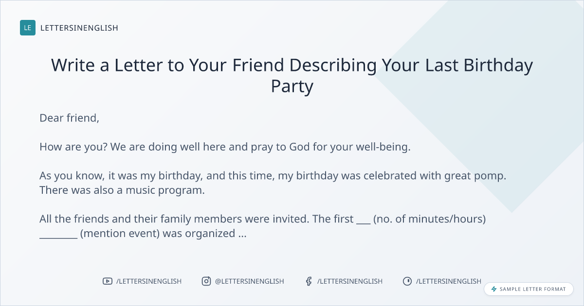 Write a Letter to Your Friend Describing Your Last Birthday Party
