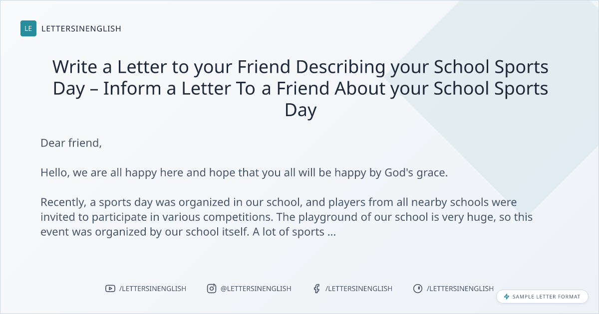 Sample Letter to your Friend Describing your School Sports Day