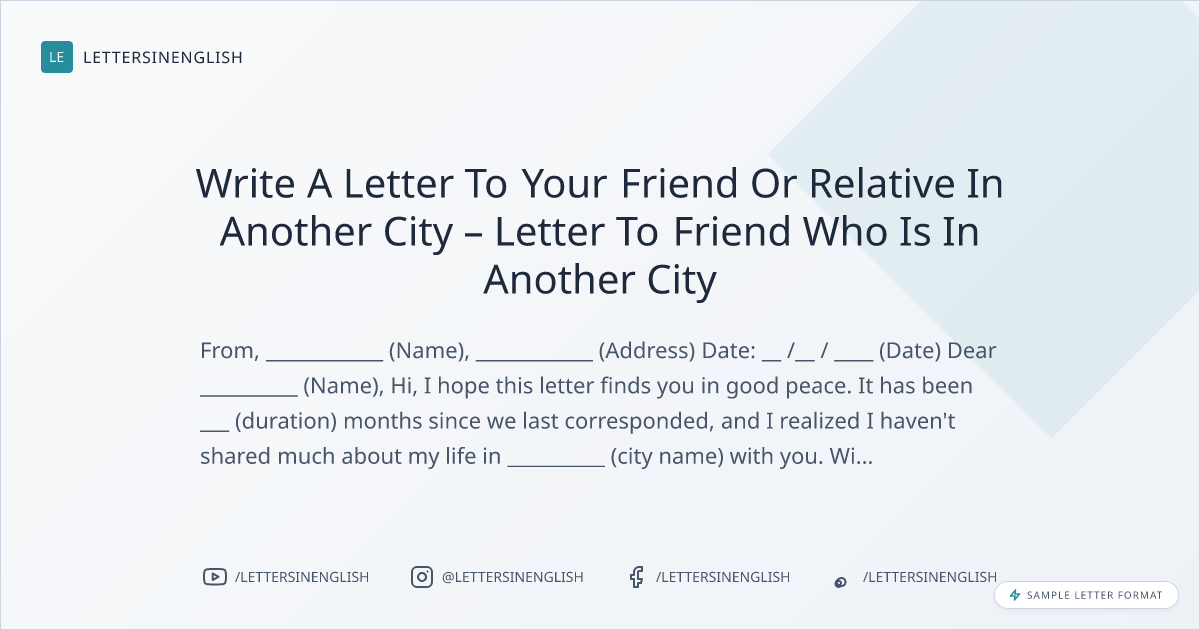 Sample Letter To Friend Who Is In Another City