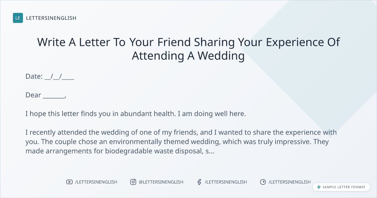 Sample Letter To Your Friend Sharing Your Experience Of Attending A Wedding