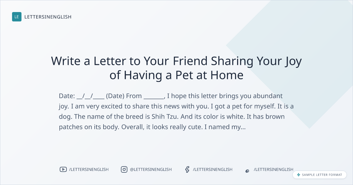 Write a Letter to Your Friend Sharing Your Joy of Having a Pet at Home