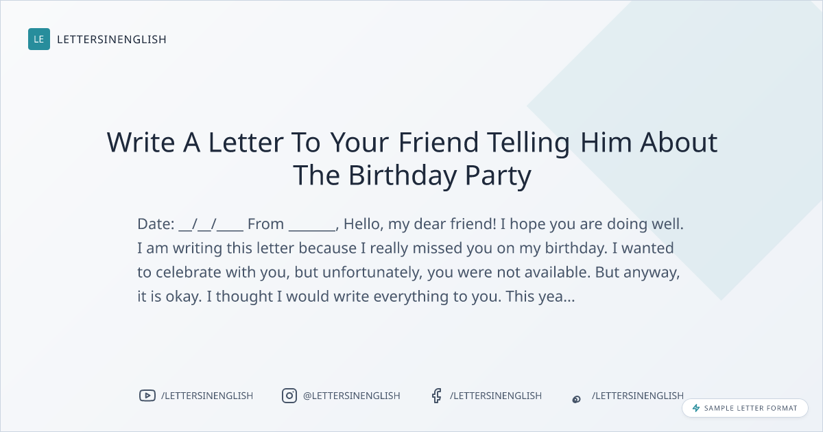 Write A Letter To Your Friend Telling Him About The Birthday Party
