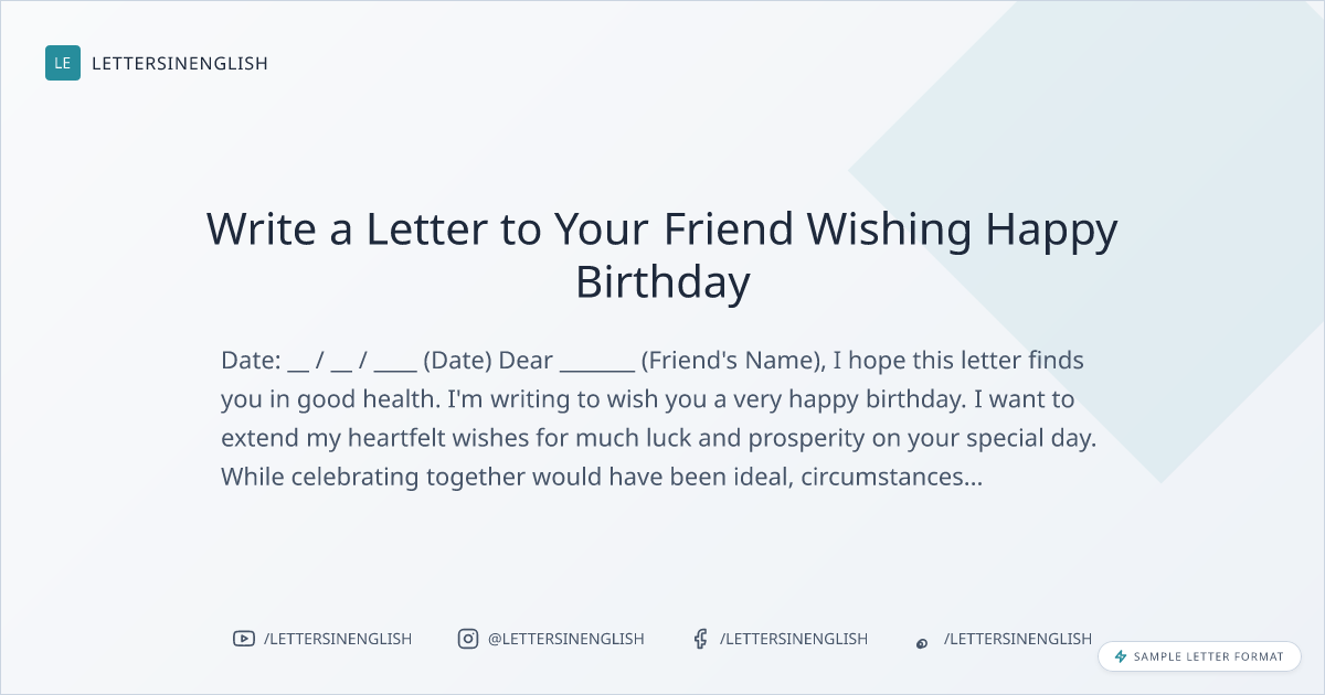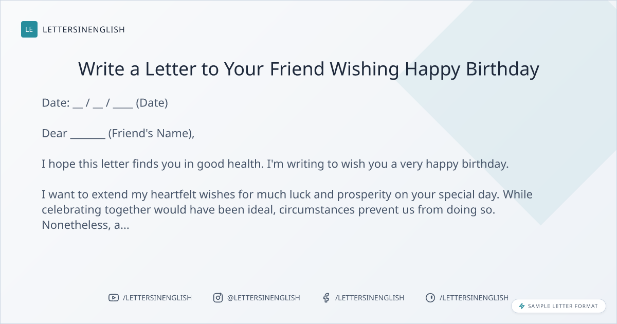 When writing a birthday letter to a friend, it's essential to convey warm wishes and genuine sentiments. Keep the tone friendly and express regret for not being able to celebrate together in person. Express heartfelt birthday wishes and anticipation for their response.