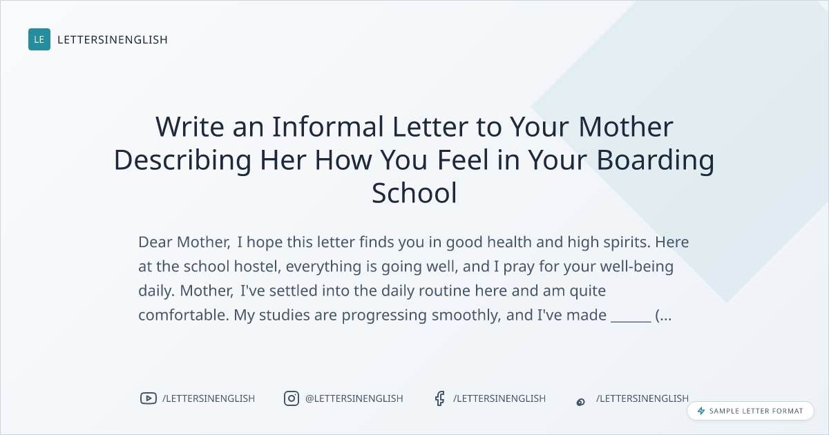 When writing an informal letter to your mother, express your feelings and experiences in a boarding school. Maintain clarity, politeness, and warmth in your communication, while ensuring you convey your longing for home and family.