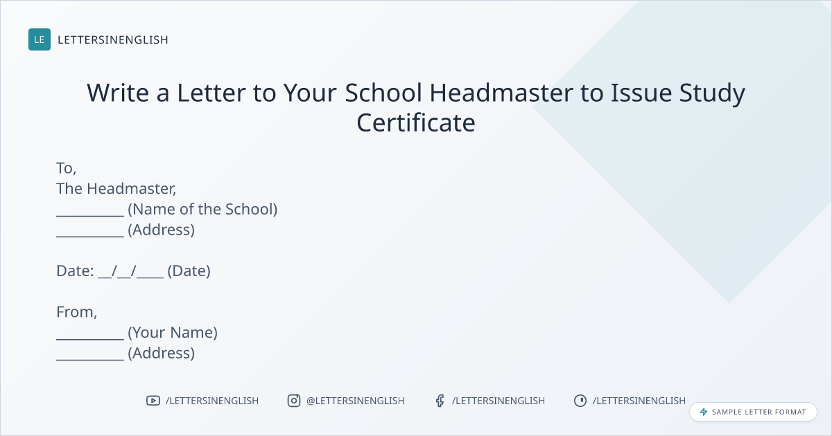 Write a Letter to Your School Headmaster to Issue Study Certificate