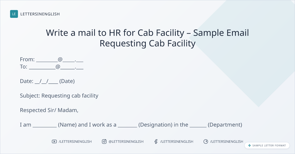 Write a mail to HR for Cab Facility – Sample Email Requesting Cab Facility