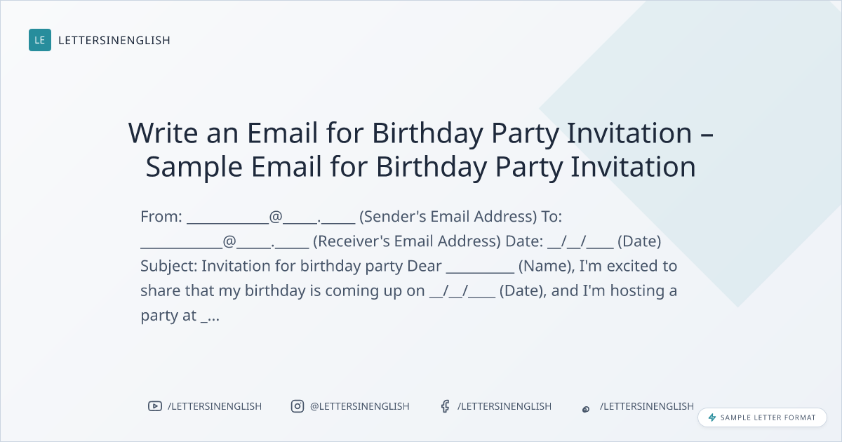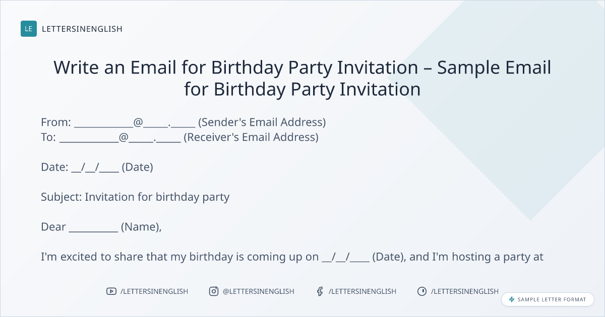 Write an Email for Birthday Party Invitation – Sample Email for Birthday Party Invitation