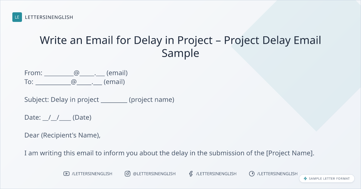 I am writing this mail in order to inform you regarding the delay and latency in the submission of the project. The project got delayed due to the reason __________ (Mention reason) and due to which the work has come to a halt.