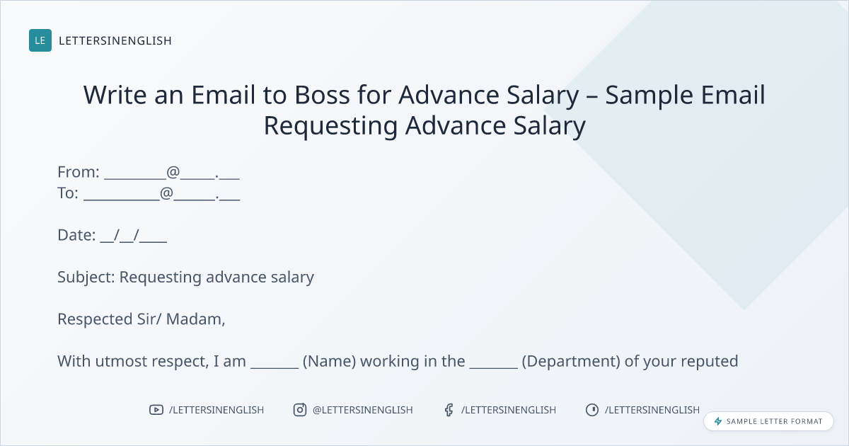 Write an Email to Boss for Advance Salary – Sample Email Requesting Advance Salary