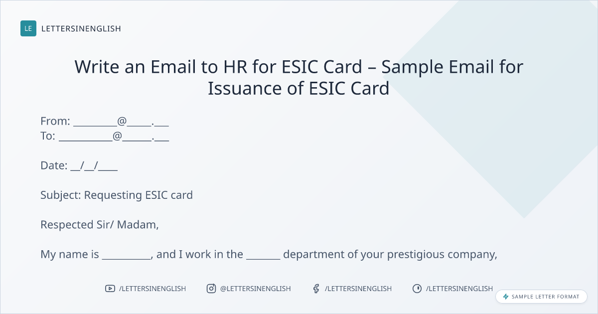 Write an Email to HR for ESIC Card – Sample Email for Issuance of ESIC Card
